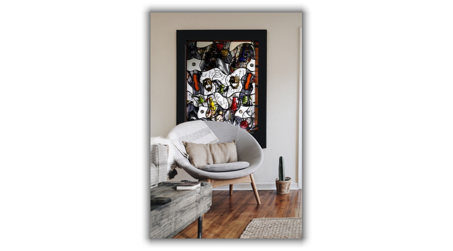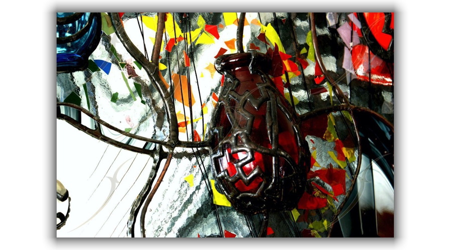"Space Matters" investighează construcția universului, de la legile primordiale ale fizicii până la cea mai sofisticatã formã de existențã, care credem că este ființa umană. Lucrarea este realizatã din două straturi. Fiecare strat este împărțit în ceea ce pare sã semene cu împletitura unei pânze, sugerând „țesătura spațiu-timp” einsteiniană, peste care se propagând undele gravitaționale (doar că de data aceasta în 3D). Scena e observatã ca prin cel mai puternic microscop imaginabil, niciodată inventat, la cea mai micã scară - scara dimensiunilor Plank. Ecuațiile scrise pe fundal dictreazã tot ce există în Univers. Acolo putem observa textura ondulată a sticlei și sinuoasele panglici de sticlă neagră care reprezintã energia întunecată și materia întunecată. Bagheta continuã care ține toatã sticla laolaltã are un profil sinuos care sugerează fotonii, particule (unde) elementare care nu au masă, și care nu sunt niciodatã în repaos ci se deplaseazã permanent cu viteza luminii. Dâre aleatorii și fragmente neregulate de culori completează imaginea cu cea a particulelor virtuale, care intră și ies din existență. Mai sus cu un nivel, se pot vedea entități în superpozitie - sã zicem electroni. Peste nivelul particulelor subatomice emerg construcții mai consistente, materie mult mai stabilă - sunt grupuri de atomi care formează cristale și molecule. De aici începe chimia. Printr-un nou proces de emergențã, din chimie pãtrundem în biologie - de la organisme primitive unicelulare, la organisme pluricelulare, la inteligență, și în cele din urmă la minunea vieții simțitoare, reprezentată de cele două măști (tragedia și comedia). Space Matters este un tribut bogãției cunoașterii și vieții.